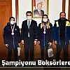 Antrenör Kerem Akbaş ile şampiyon olan Rabia Topuz ve Hatice Akbaş, turnuvalara hazırlık ve şampiyona deneyimleri hakkında Vali Baruş’a bilgiler verdiler.