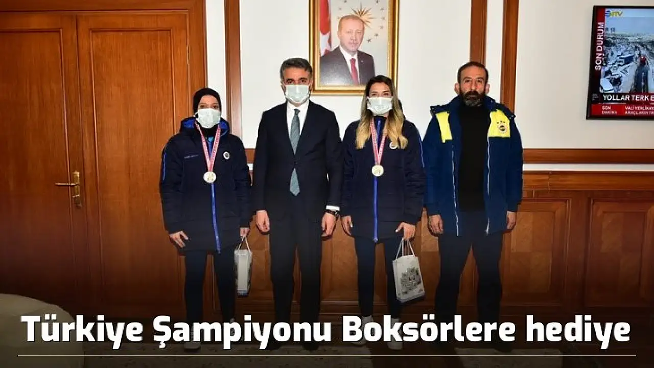 Zonguldak’ta düzenlenen Nuri Eroğlu Büyük Erkekler ve Büyük Kadınlar Türkiye Ferdi Boks Şampiyonası’nda Türkiye Şampiyonu olan Malatyalı Hatice Akbaş ve Rabia Topuz’u makamında kabul eden Vali Aydın Baruş, sporculara hediye vererek tebrik etti.