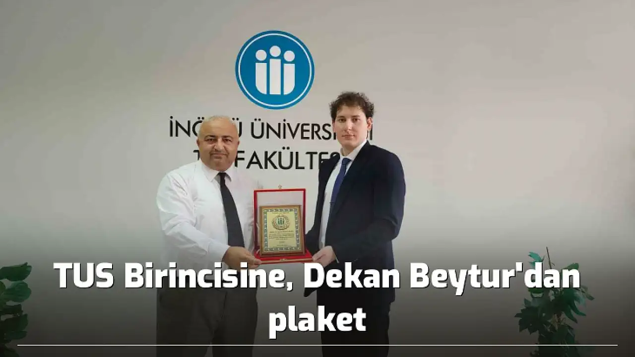 Tıpta Uzmanlık Eğitimi Giriş Sınavı'nda (TUS) birinci olan İnönü Üniversitesi Tıp Fakültesi mezunu Dr. Aytaç Bülent Kuku'ya Fakülte Dekanı Ali Beytur tarafından plaket takdim edildi.
