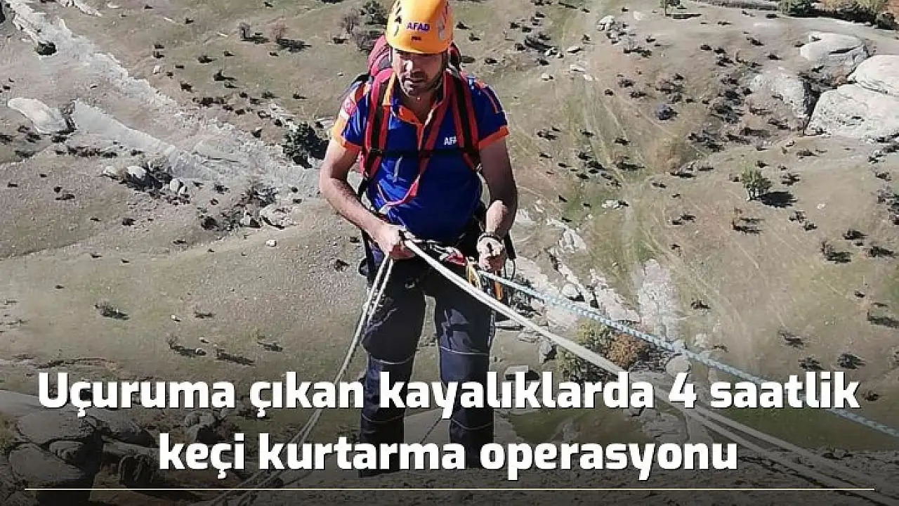 Uçuruma çıkan kayalıklarda 4 saatlik keçi kurtarma operasyonu