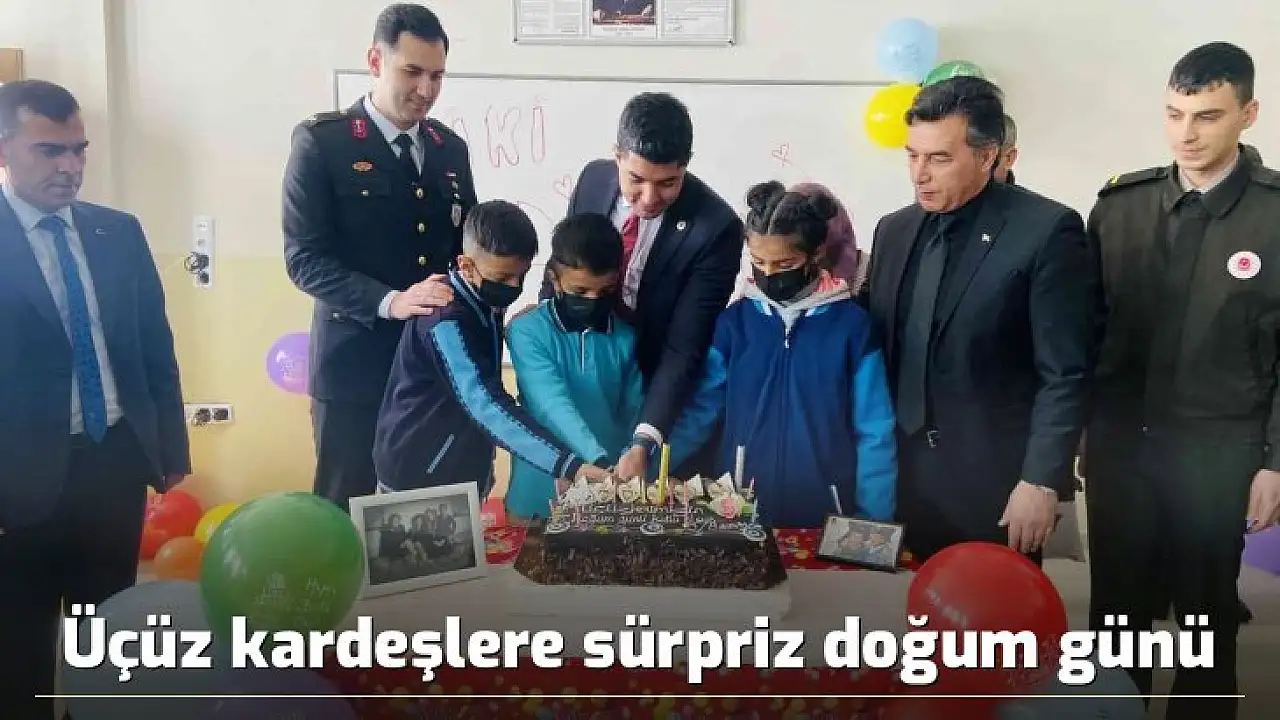 Malatya'nın Doğanşehir ilçesinde aynı okulda eğitim gören üçüz kardeşlere sürpriz doğum günü programı yapıldı.