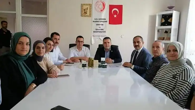 Diyarbakır Vali Yardımcısı Fatih Ayaz, Kaymakam Vahit Yılmaz ve Ticaret İl Müdürü Zafer Atik, Çermik İlçe Kadın Girişimi Üretim ve İşletme Kooperatifinde çalışmalar hakkında bilgi aldı.