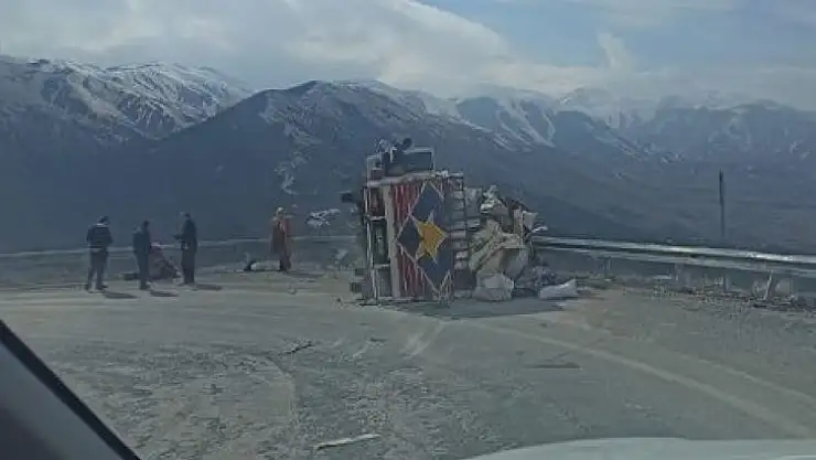 Malatya Kubbe dağında seyir halindeki yüklü kamyon virajı alamayarak devrildi.