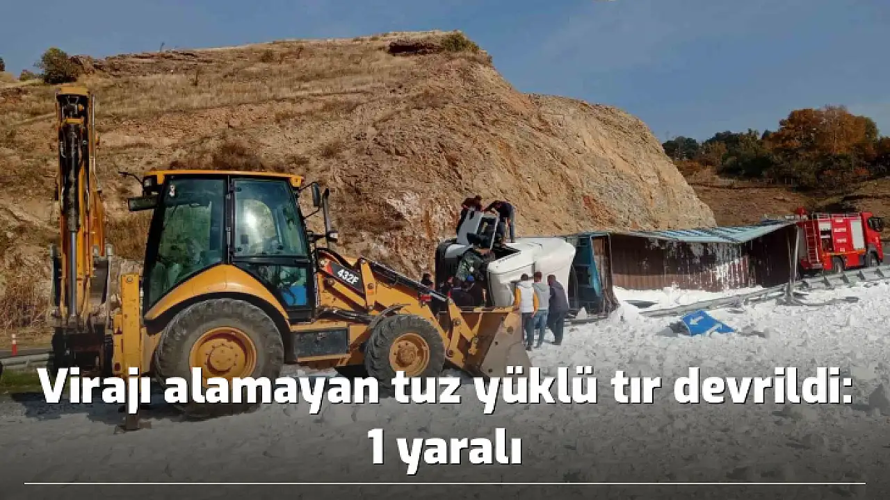 Virajı alamayan tuz yüklü tır devrildi: 1 yaralı