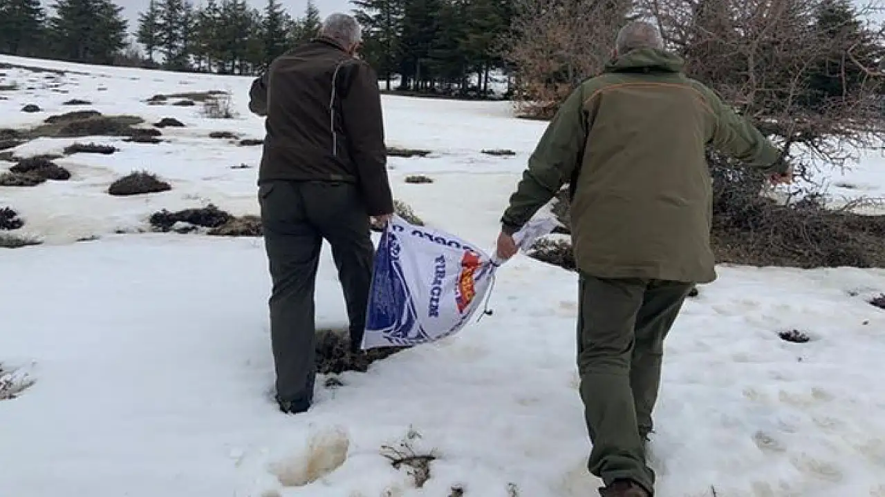 Elazığ'da kış mevsimi nedeniyle yüksek rakımlı bölgelere yaban hayvanları için yem bırakıldı.
