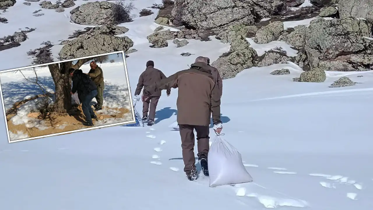 Elazığ'da kış mevsimi nedeniyle yüksek rakımlı bölgelere yaban hayvanları için yem bırakıldı.