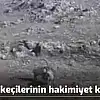 Dişi yaban keçileri kavga nedeniyle bölgeden kaçışırken, kavga anında çıkan boynuz sesleri dikkat çekti.