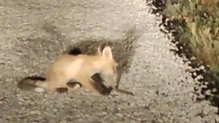 Görüntüler, Tunceli-Ovacık karayolu Munzur Vadisi Milli Parkı’nda otomobiliyle seyir halinde olan bir sürücü tarafından çekildi. Yol kenarında bulunan çalılık alandaki yavru yılanı, temkinli bir şekilde asfalta çıkaran yavru tilki, daha sonra yavruyu pençe ve dişleriyle yaraladı. Yoldan geçen araçlara aldırış etmeyen tilki zaman zaman kurtulmak için çalılık alana kaçan yavru yılanı yeniden asfalta getirerek yedi.