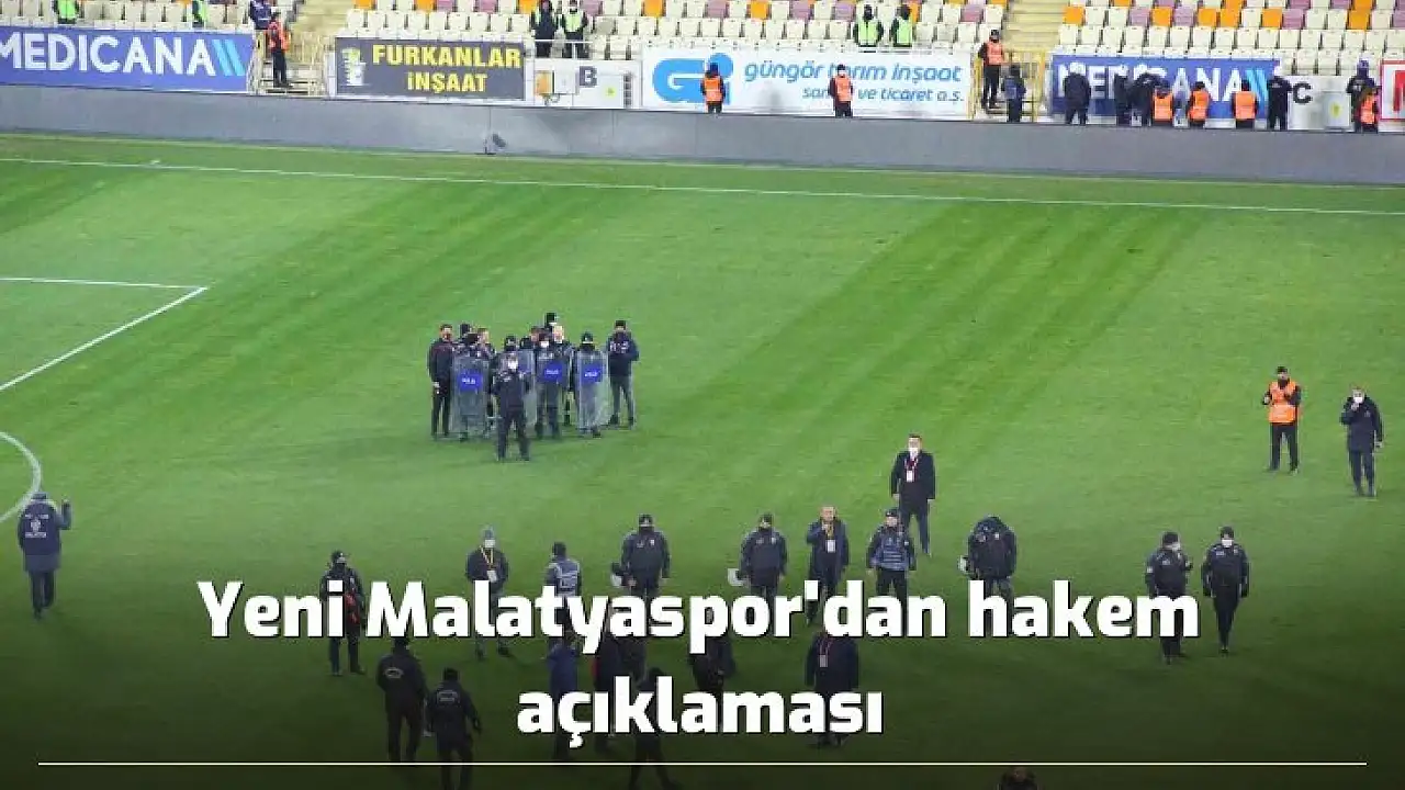 Yeni Malatyaspor Kulübü, Kayserispor maçını yöneten hakemlere tepki göstererek, "Türkiye Futbol Federasyonu’nun bir çözüm geliştirememiş olması ve hata yapan hakemlerin ödüllendirilip tekrar maçlara atanması kabul edilebilir gibi değil" açıklaması yaptı.