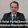 Yeniden Refah Partisi Genel Başkanı Dr. Fatih Erbakan, Kayapınar İlçe Başkanlığı 2. Olağan Kongresine katılmak üzere Diyarbakır’a geldi.