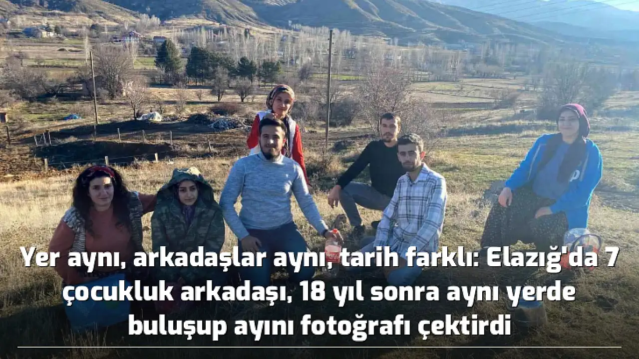 Elazığ'ın Maden ilçesine bağlı Durmuştepe köyündeki 7 çocukluk arkadaşı, çocukken çektirdikleri fotoğrafın aynısını 18 yıl sonra aynı yerde tekrar verdi.
