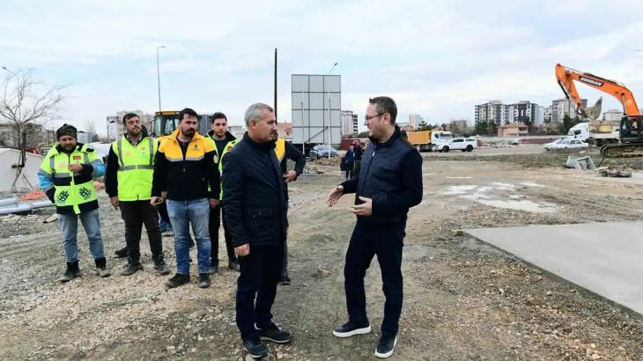 Yeşilyurt Belediye Başkanı Mehmet Çınar ve Başakşehir Belediye Başkanı Yasin Kartoğlu, Yeşilyurt ilçesinde yapımı süren konteyner kentleri gezerek yapılan çalışmalarla ilgili bilgi aldı.