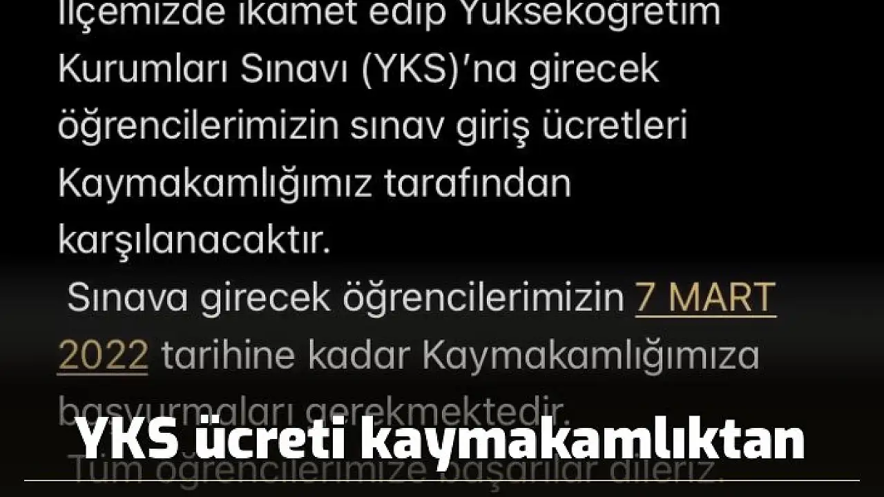 Doğanşehir Kaymakamlığı tarafından konuyla ilgili olarak yapılan açıklamada, “2022 yükseköğretim kurumları sınavına girecek öğrencilere kaymakamlığımızdan destek verilecek. İlçemizde ikamet edip de YKS’ye girecek öğrencilerimizin sınava giriş ücreti Kaymakamlığımız tarafından karşılanacaktır. Sınava girecek öğrencilerimizin 7 Mart tarihine kadar Kaymakamlığımıza başvurmaları gerekmektedir” ifadelerine yer verildi.