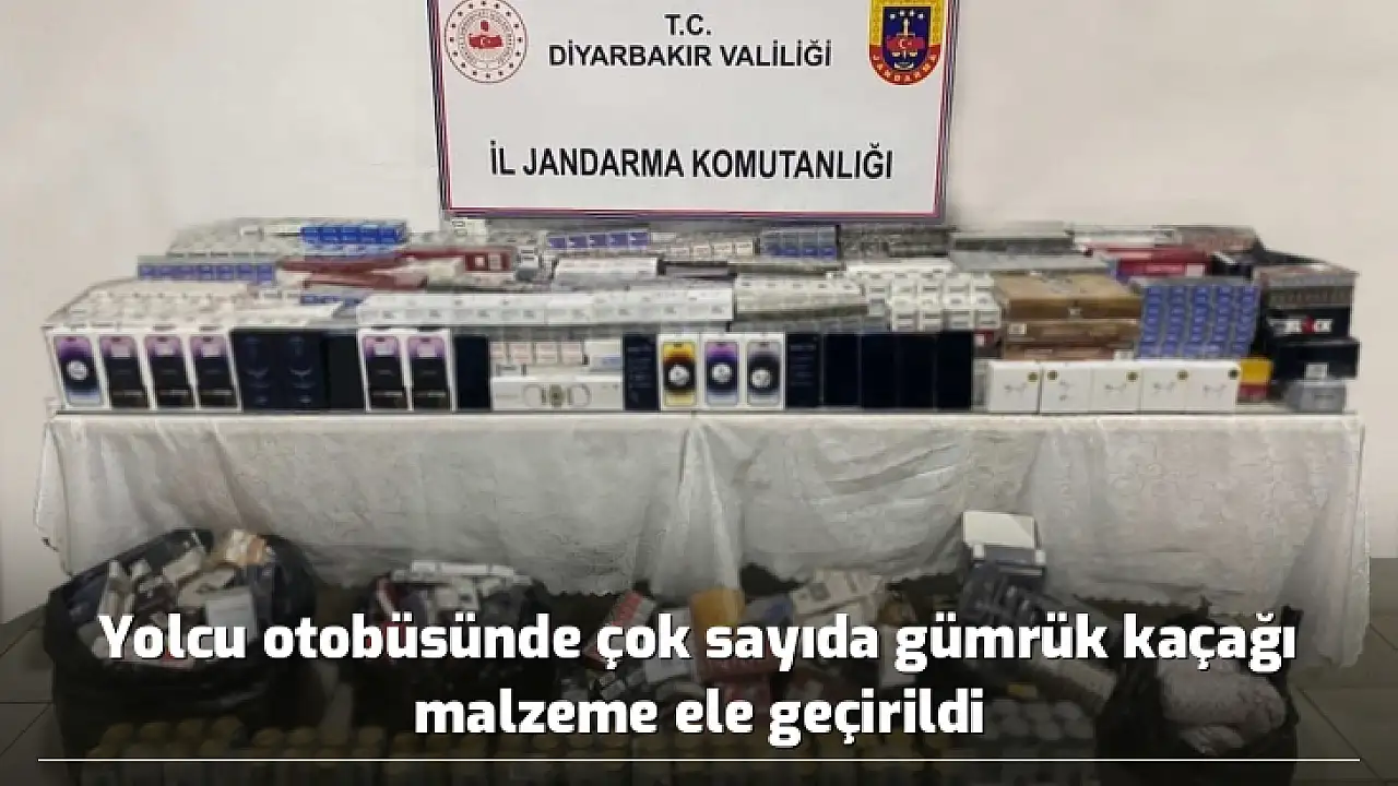Valilikten yapılana açıklamada, “Diyarbakır İl Jandarma Komutanlığı, Kaçakçılık ve Organize Suçlarla Mücadele Şube Müdürlüğü ve Silvan İlçe Jandarma Komutanlığınca, yapılan titiz çalışmalar neticesinde, şehirlerarası yolcu taşımacılığı yapan otobüste, ülkemize kaçak yollarla getirildiği tespit edilen, 547 karton sigara, 1550 adet puro, 48 adet elektronik sigara, 33 litre içki, 27 adet akıllı cep telefonu ve 18 adet akıllı kol saati ele geçirilmiştir” denildi.