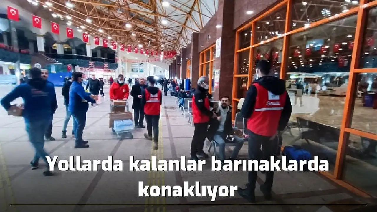 Malatya'da yoğun kar yağışı nedeniyle yollarda kalanların su ve gıda ihtiyaçları giderilirken, barınaklarda misafir ediliyor.