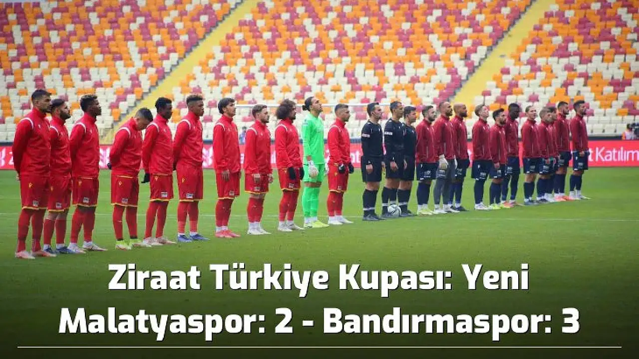 Yeni Malatyaspor, Ziraat Türkiye Kupası 5. Turu’nda sahasında karşılaştığı TFF 1. Lig ekiplerinden Bandırmaspor’a 3-2 mağlup oldu. Bu sonuçla Yeni Malatyaspor, 5. turda kupaya veda etmiş oldu.